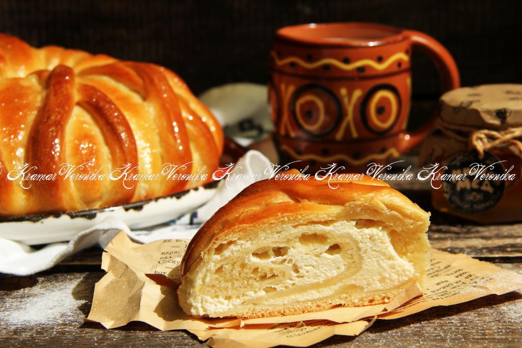К домашнему чаепитию можно испечь красивый пирог из дрожжевого теста с нежнейшей начинкой из творога. Конечно, пирог можно оформить по-разному, я предлагаю сделать его в виде эффектного рулета, который затем аккуратно скручивается в "улитку". Получается очень красивая, пышная и вкусная домашняя выпечка. В этом пироге очень воздушное тесто, а творожные слои в разрезе прекрасно прослеживаются. Я верх пирога смазала мёдом, это придало выпечке красивый глянец и аромат.