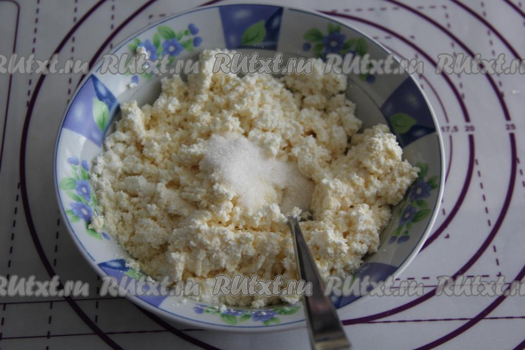 Хорошо перемешать творожную начинку вилкой. По желанию, можно добавить ванильный сахар.