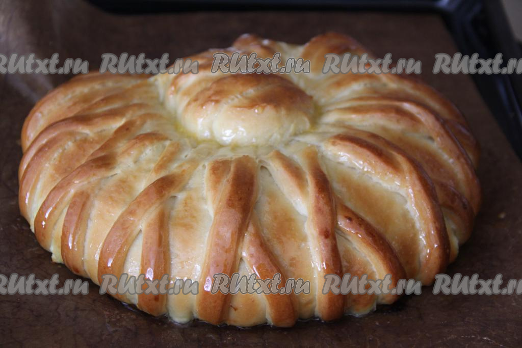 Выпекать дрожжевой пирог с творогом в разогретой духовке минут 45 (до золотистости теста) при температуре 180 градусов. Горячую выпечку вынуть из духовки и смазать мёдом. Дать остыть. Можно перед подачей присыпать сахарной пудрой.