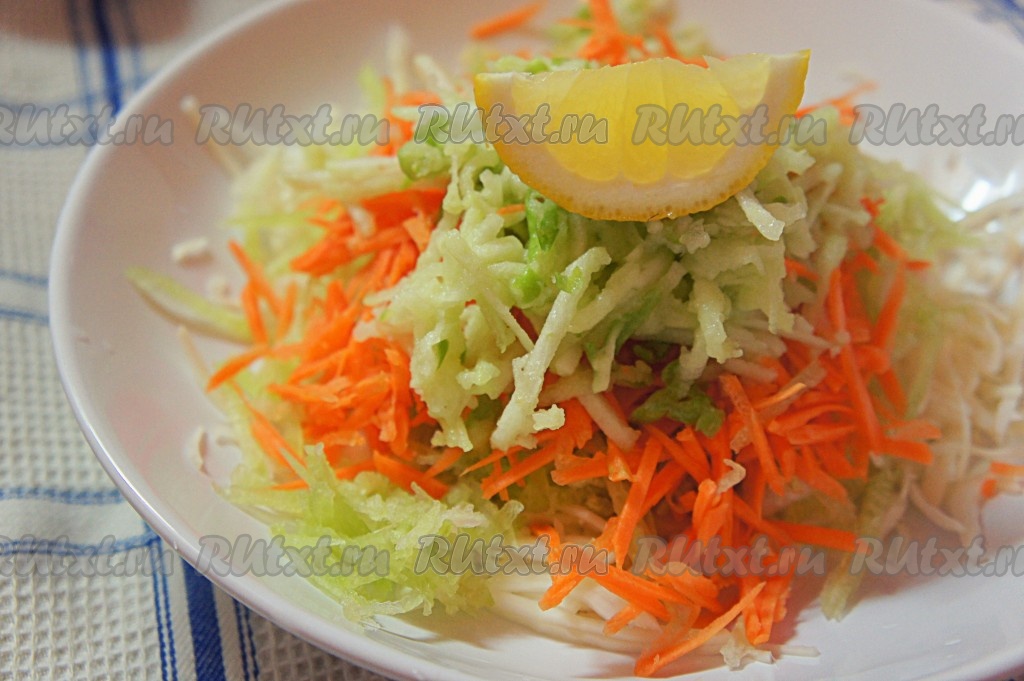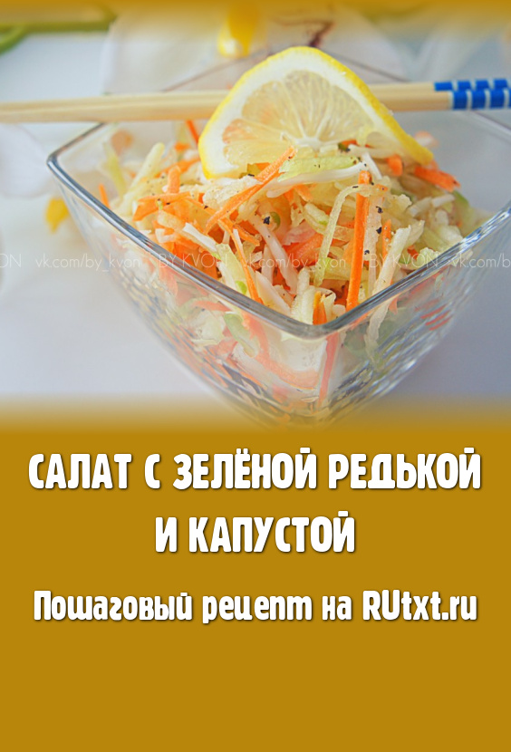 Если Вы хотите питаться вкусно и правильно, то этот рецепт салата с зелёной редькой, с капустой и морковью - то, что нужно. Блюдо получается сочным и полезным. Лимонная заправка придаёт ему свежесть и лёгкость. Попробуйте этот простой овощной салат и насладитесь его приятным вкусом!
