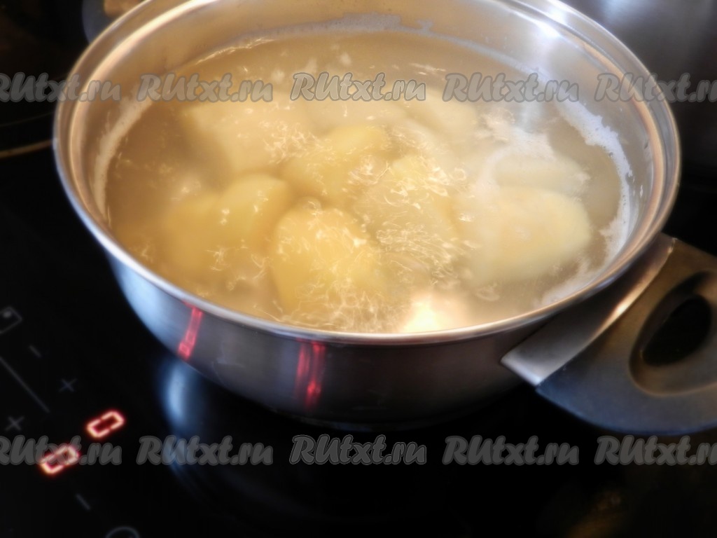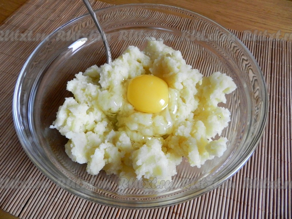Для картофельных клецек: сварившийся картофель размять в пюре. Остудить. Добавить яйцо, перемешать.