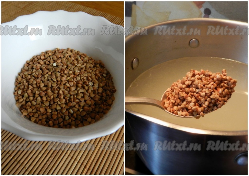 Гречку помыть и всыпать в бульон, довести до кипения, уменьшить огонь и варить до готовности 15-20 минут.