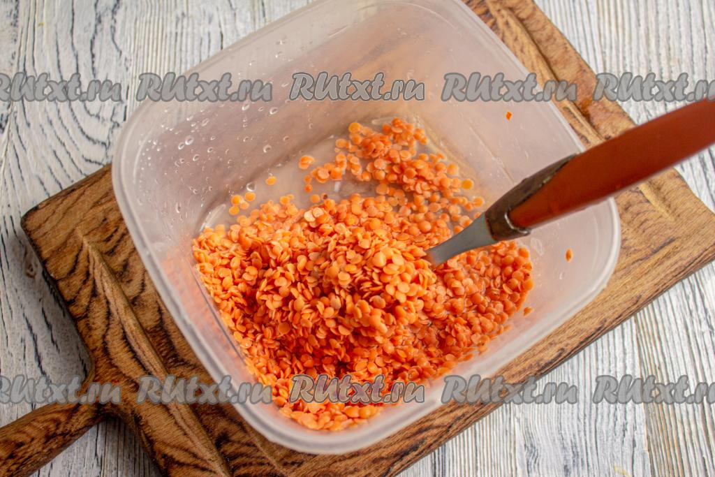Промойте чечевицу водой.