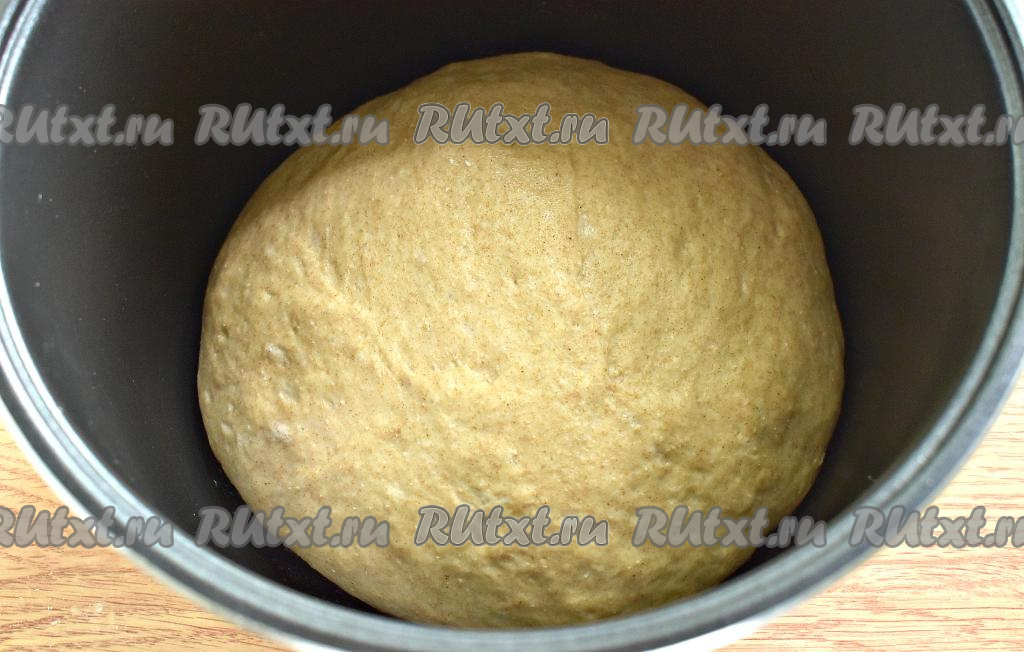 Перекладываем тесто для булочек в миску и на 1 час, прикрыв полотенцем, убираем в тёплое место для подхода. В этот раз я решила поместить тесто для подъёма в мультиварку, для этого смазываем дно чаши мультиварки растительным маслом, кладём тесто, закрываем крышку и включаем программу «Мультиповар» на 1 час (температура 35 градусов). Вот так тесто из цельнозерновой муки поднялось по истечении часа.
