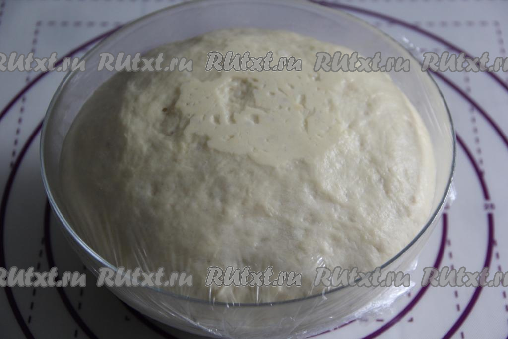 Тесто в миске, накрыв полотенцем, перенести в тёплое место на 1 час.