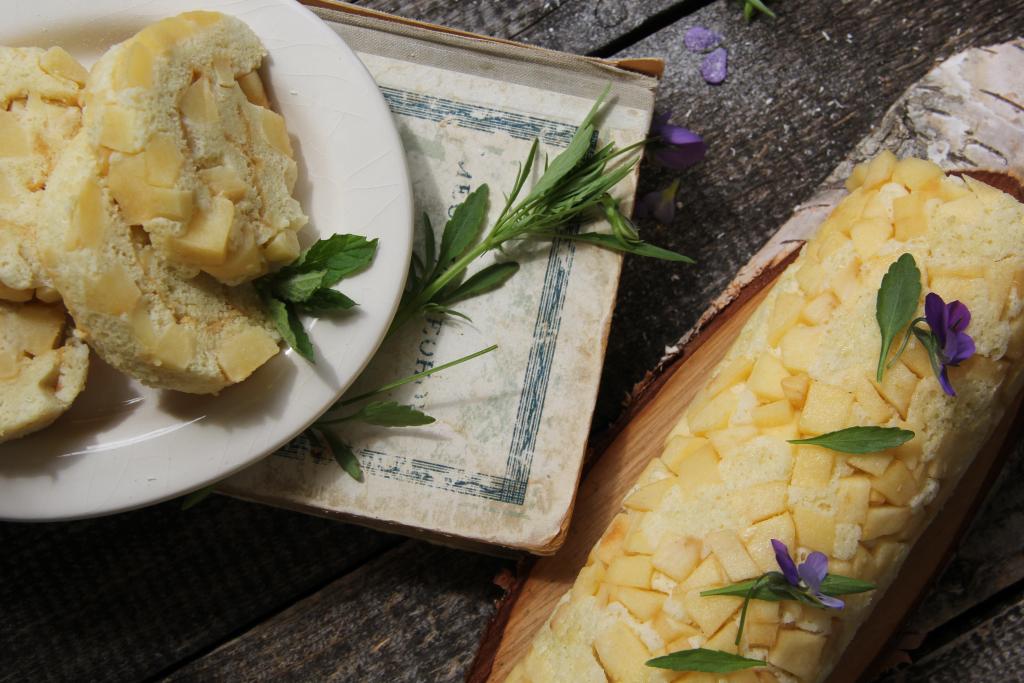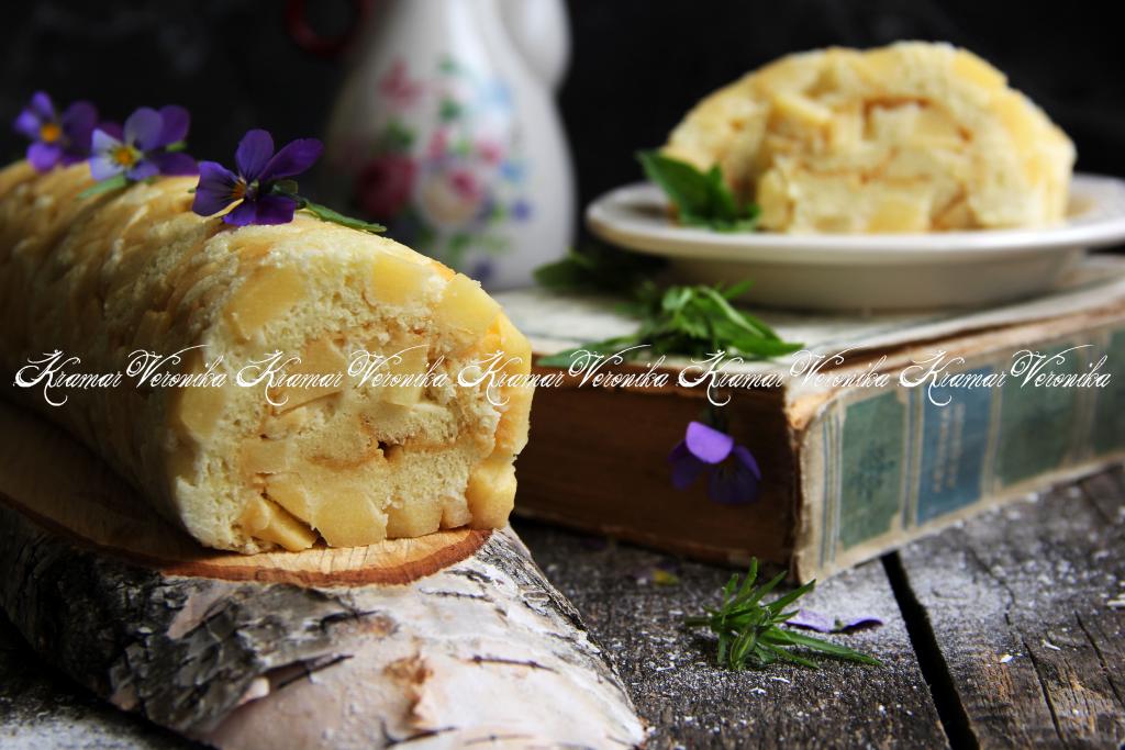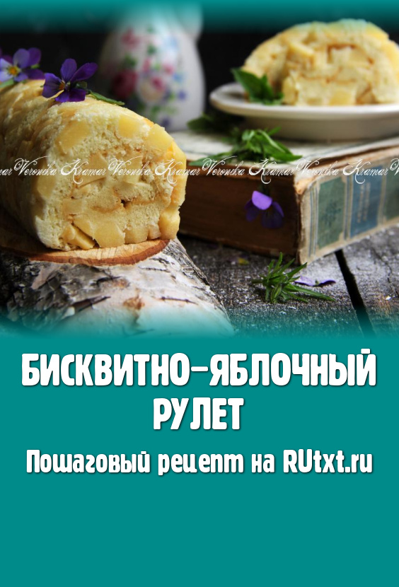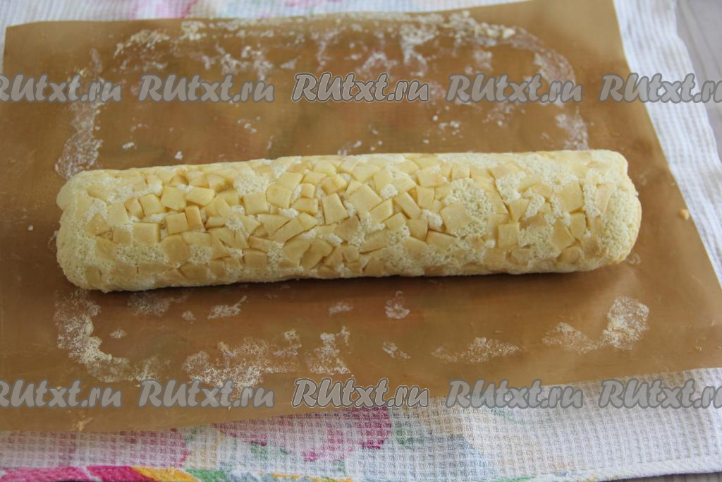 К чаю можно быстро испечь вкусный, ароматный, нежный бисквитно-яблочный рулет. Готовится он без крема, так как яблоки мы добавляем непосредственно в бисквит при выпечке. Бисквит получается очень воздушным. Яблоки для этой выпечки лучше использовать не очень твёрдые, нарезать их нужно на мелкие кусочки (кубики). Перед подачей рулет можно просто присыпать сахарной пудрой.