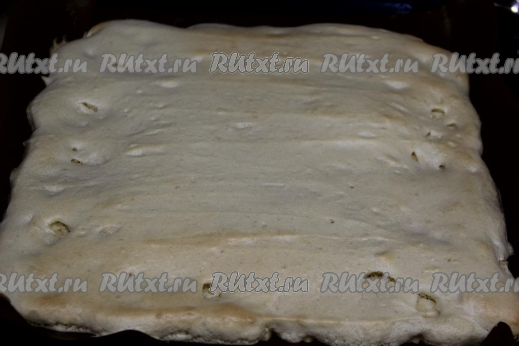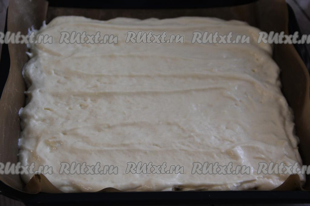Перемешать тесто лопаткой, аккуратно, не сбивая пышность яичной массы, движениями сверху вниз. Тесто получится воздушным, в меру густым.