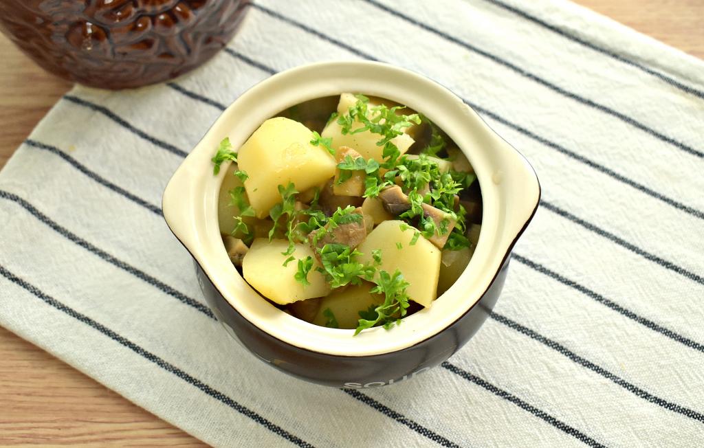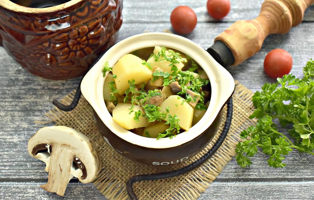 Из картофеля и свежих грибов можно приготовить множество самых разнообразных блюд. Предлагаю потушить в горшочке в духовке картошку со свежими шампиньонами. Блюдо, несмотря на простоту приготовления, получается очень вкусным, с приятным грибным ароматом. Картошечка становится мягкой. Это сытное блюдо может стать и полноценным обедом или ужином, и дополнением, например, к мясу. К столу картошку с шампиньонами можно подать прямо в горшочке или выложить на тарелку. Просто, сытно и вкусно, попробуйте!