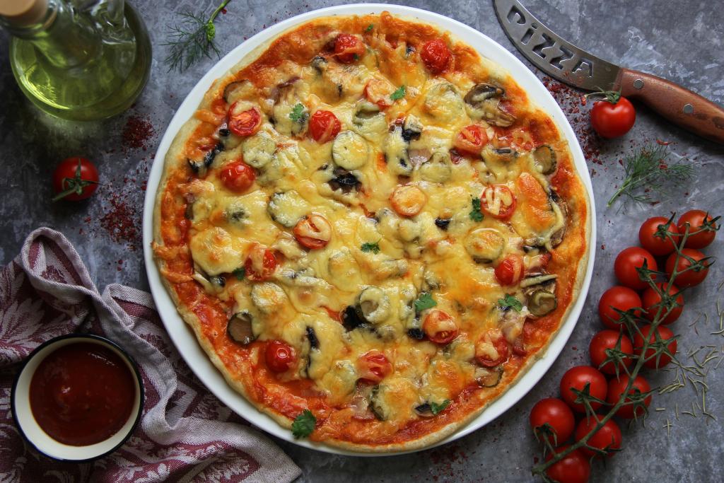 Вкусную и сытную пиццу подать к столу в горячем виде.