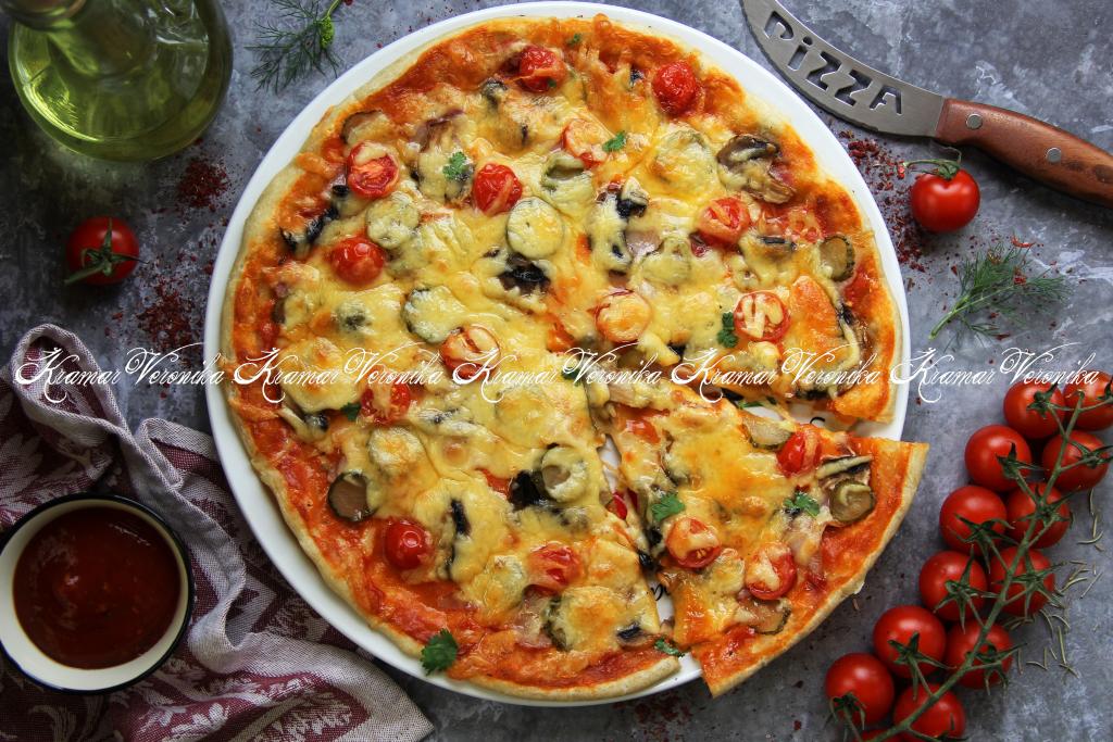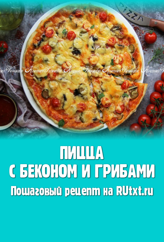 Если вы хотите достаточно быстро испечь вкусную, сытную пиццу с тонкой основой и сочной начинкой, тогда советую обратить внимание на этот рецепт. В качестве начинки возьмём бекон, грибы, овощи и, конечно, сыр. Тесто замешивается за считанные минуты, без добавления дрожжей, получается эластичным и нежным. Из указанного количества ингредиентов получается вкусная пицца диаметром 28 сантиметров.