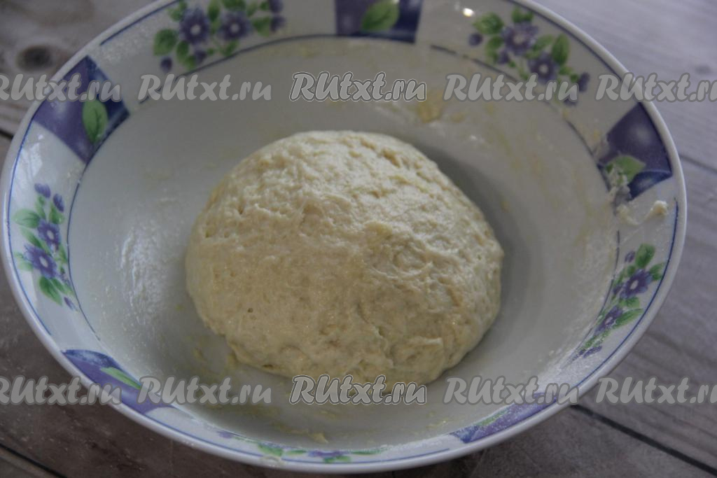 Вымесить тесто руками. Оно получится нежным и пластичным. Оставить тесто в миске, накрыв полотенцем, при комнатной температуре на 20 минут.
