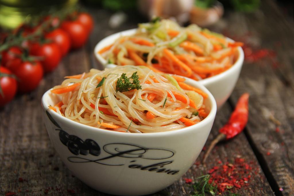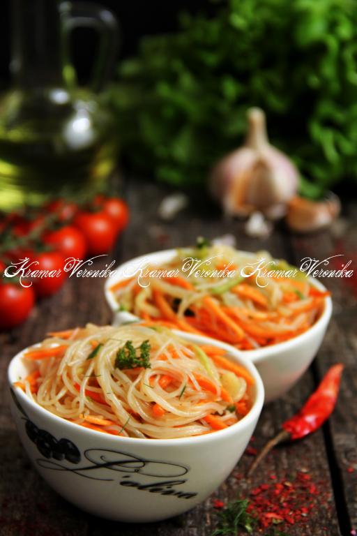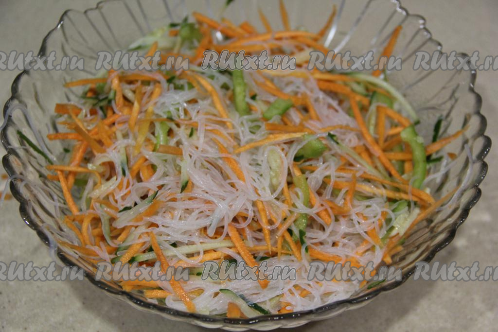 В нашей семье очень любят холодные и горячие блюда из фунчозы. На праздничный стол или для перекуса можно приготовить сытный, в меру острый, яркий салат из фунчозы с добавлением болгарского перца, моркови и огурцов. Рецепт очень простой, нужно лишь нарезать овощи, заварить фунчозу, а затем заправить все ингредиенты специями, дать настояться и подать к столу. Уверена, этот вкусный салат с фунчозой и хрустящими овощами понравится многим!