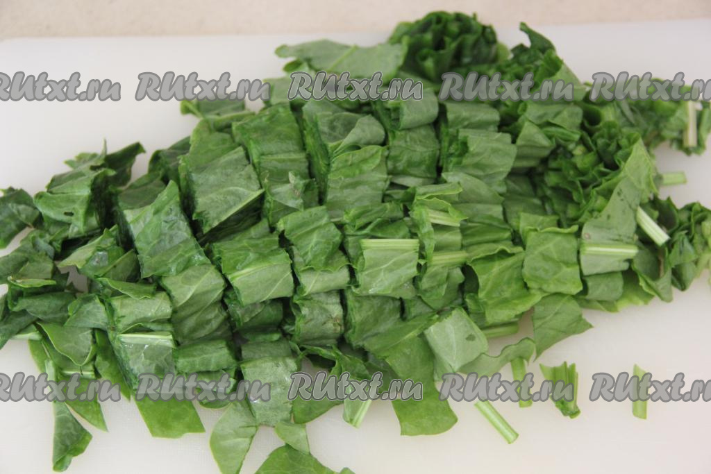 Щавель промыть под водой, обсушить и нарезать на полоски шириной 1,5 сантиметра.