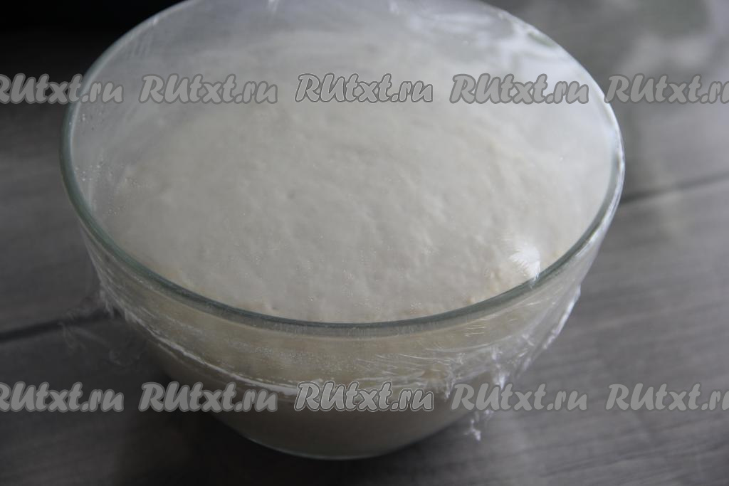 Накрыть миску с тестом пищевой плёнкой и оставить на 1 час для подъёма.
