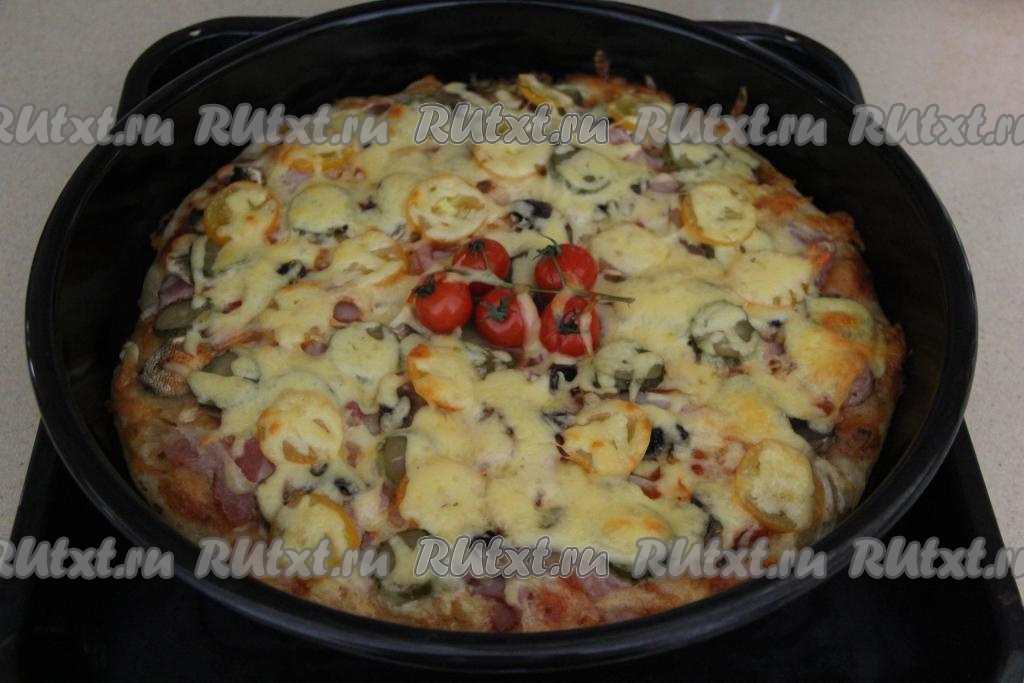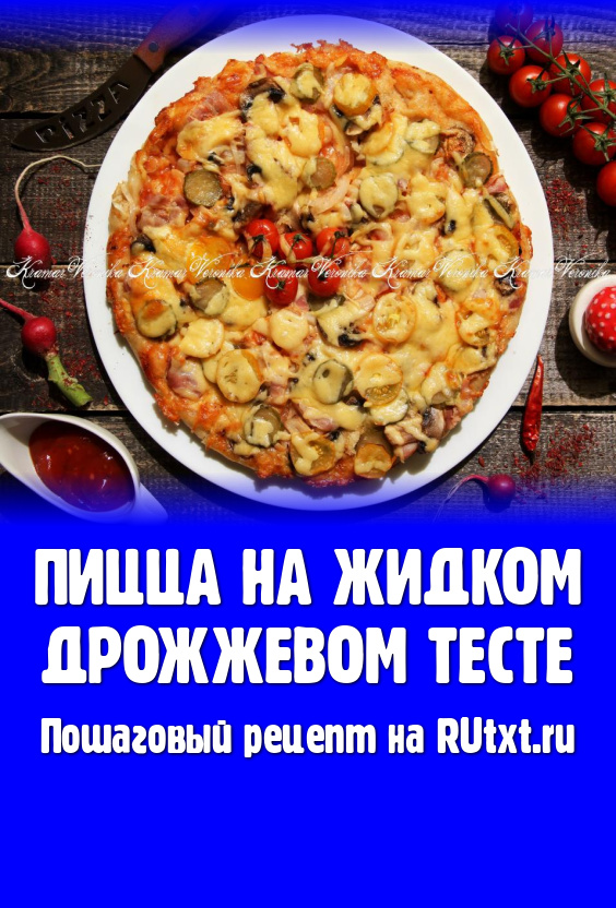 Выпекать пиццу на жидком дрожжевом тесте минут 15-20 при температуре 180 градусов.