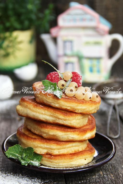 Предлагаю к завтраку или полднику приготовить пышные оладьи с пористой структурой, замешанные на ряженке без добавления дрожжей. Оладьи выпекаются на растительном масле, масла не жалеем. Оладушки получаются нежными, вкусными, при остывании не опадают. Такие оладьи можно подать с мёдом, сахарной пудрой, сиропом, сметаной или сгущенкой.