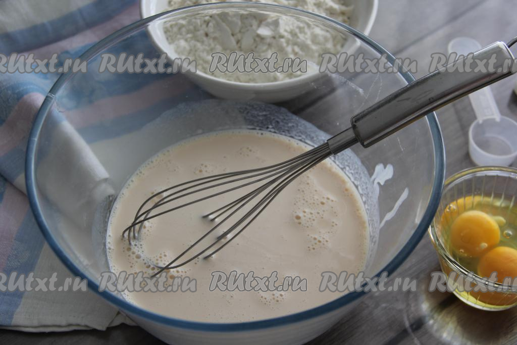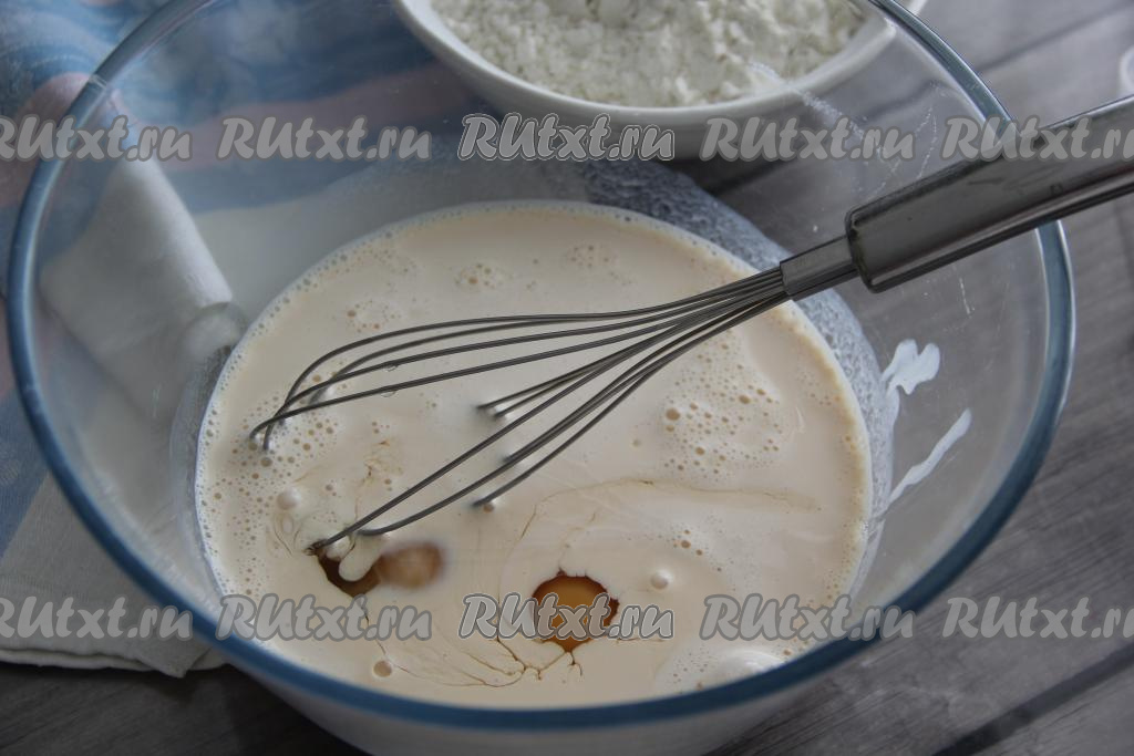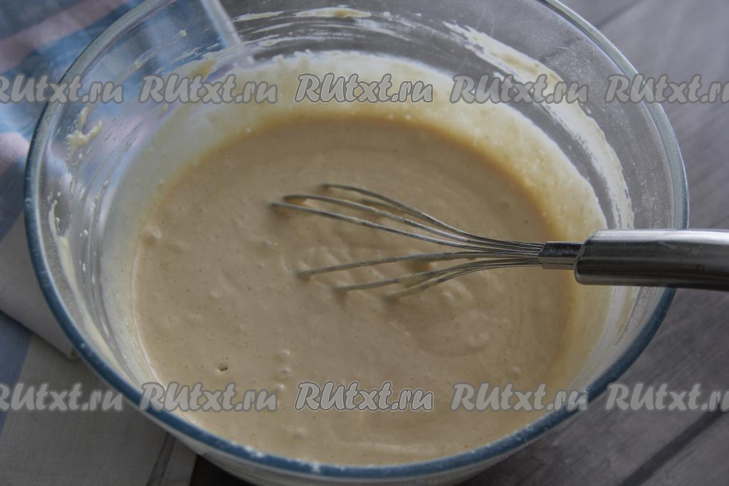 Перемешать тесто венчиком, оно получится не очень густым, воздушным.