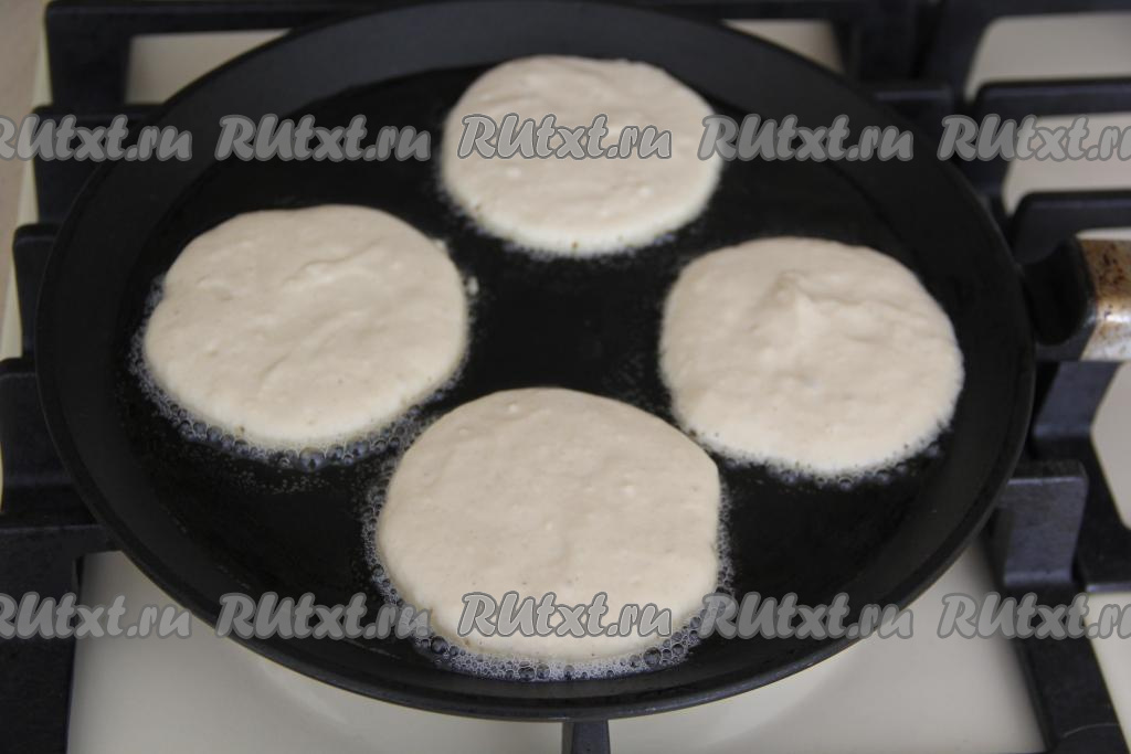 В сковороду влить масло (масла не жалеем) и очень хорошо разогреть его. Выкладывать по 1 столовой ложке теста, формируя оладушки.