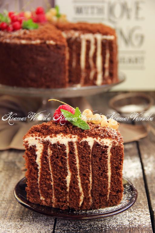 Шоколадно-медовый торт "Спартак" готов. Посмотрите на разрез, это просто чудо! Очень вкусный и нежный торт получился, а готовится он несложно, без раскатывания коржей.