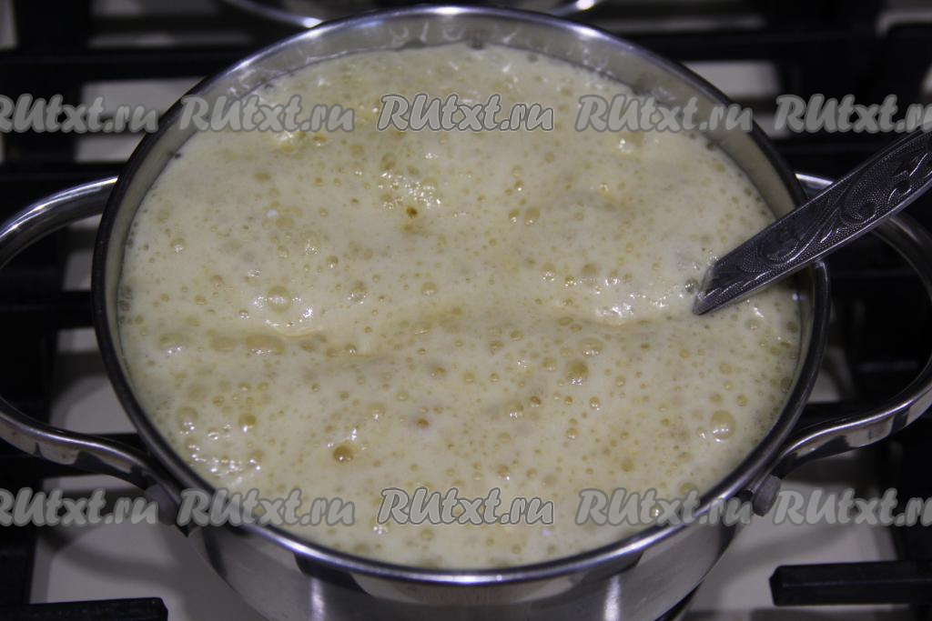 Добавить в горячую массу соду и перемешать. Масса посветлеет и увеличится в объёме в три раза, снять с огня.