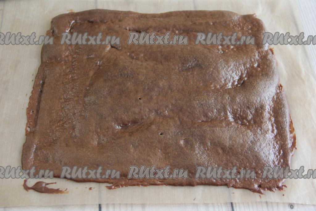 Выпекать каждый корж в разогретой духовке минут 7 при температуре 180 градусов. Готовность проверить сухой зубочисткой (если корж готов, зубочистка после его прокалывания останется сухой). Таким образом испечь все коржи. Всего получатся 3 коржа, остудить их полностью.