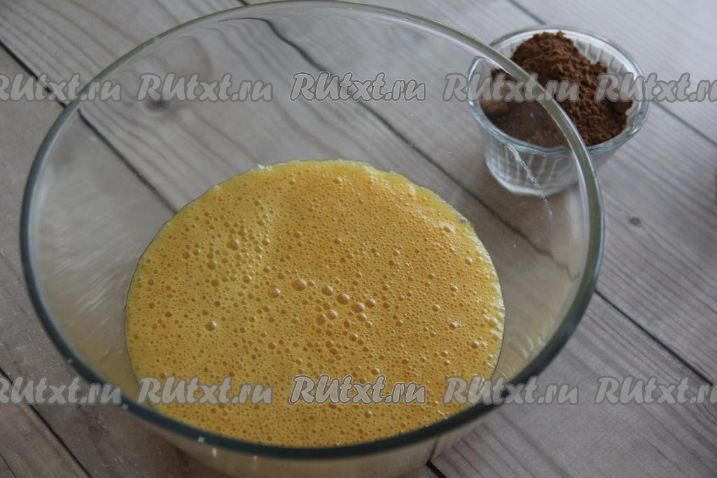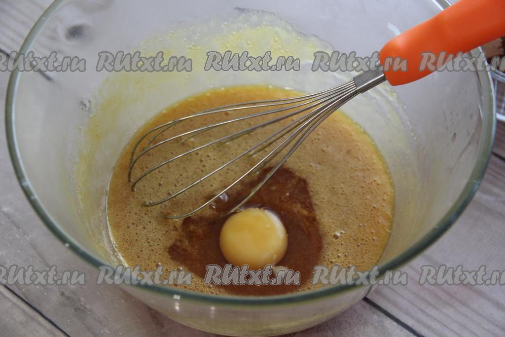 Затем по одному добавить яйца, интенсивно перемешивая массу венчиком.