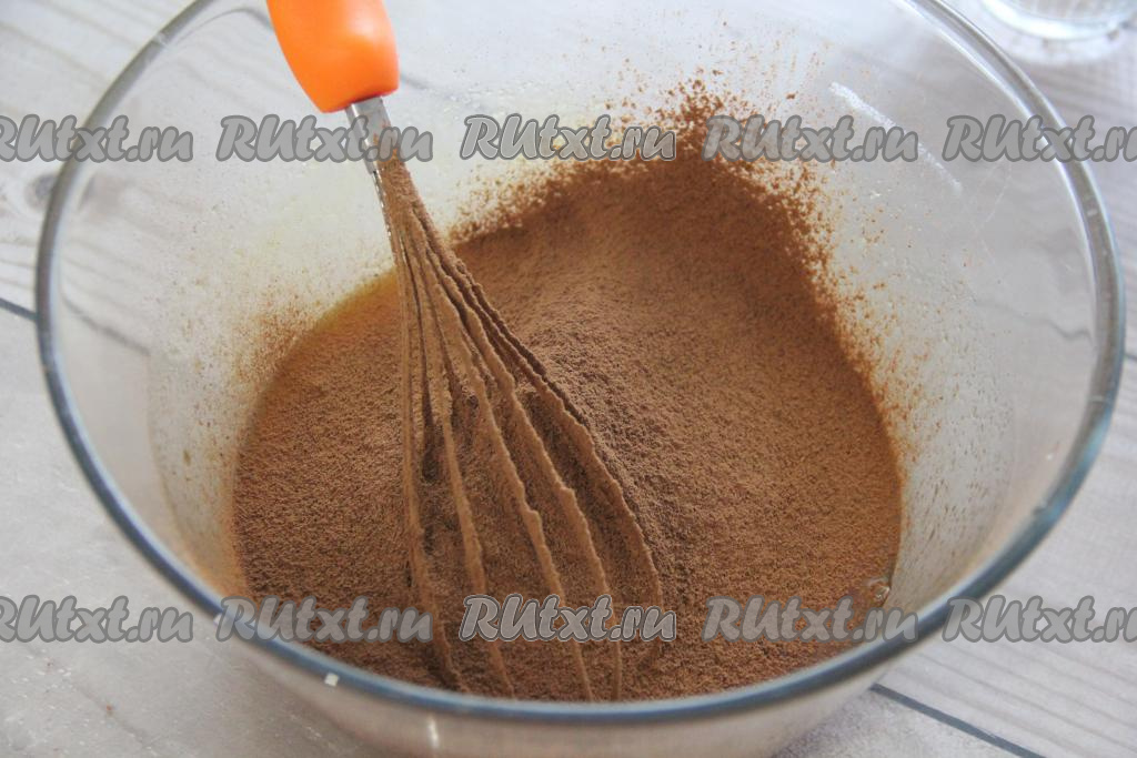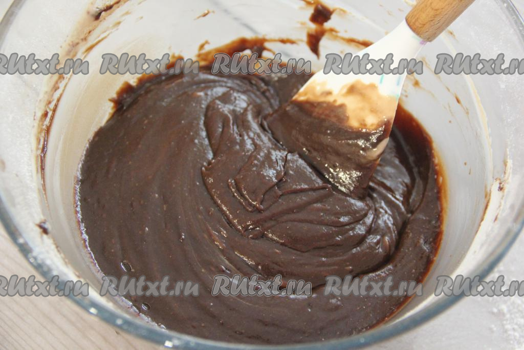 Перемешать тесто венчиком, оно получится не очень густым, как на фото.