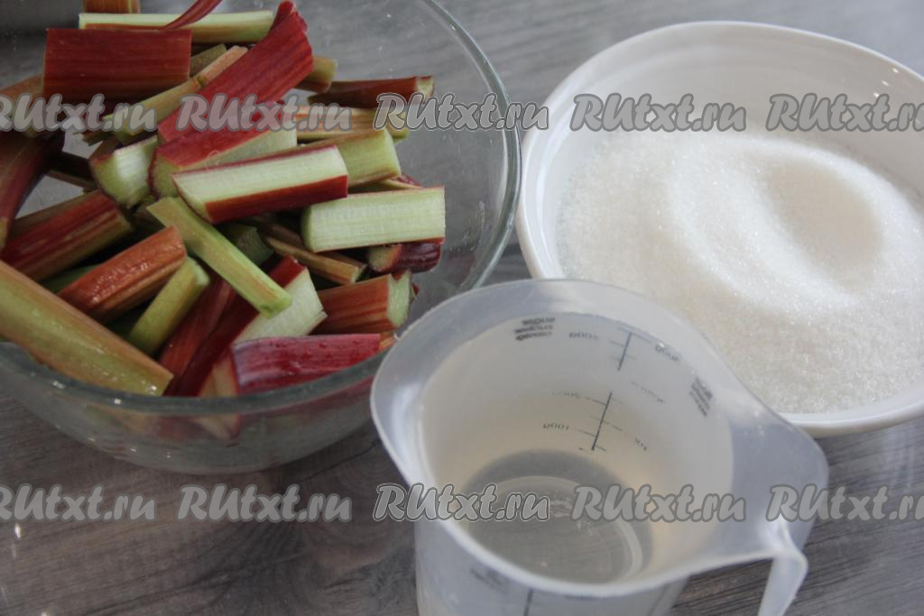 Подготовить продукты. Стебли ревеня вымыть, нарезать на брусочки.