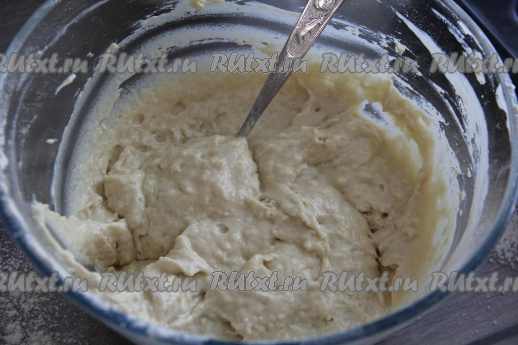 Тесто должно получиться в меру густым, вязким и тягучим.