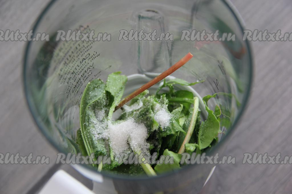Щавель вымыть, лишнюю воду стряхнуть. В чашу блендера поместить щавель и сахар.
