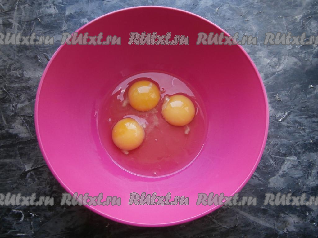 Разбить яйца в миску, всыпать соль, взбить миксером в течение 1 минуты.
