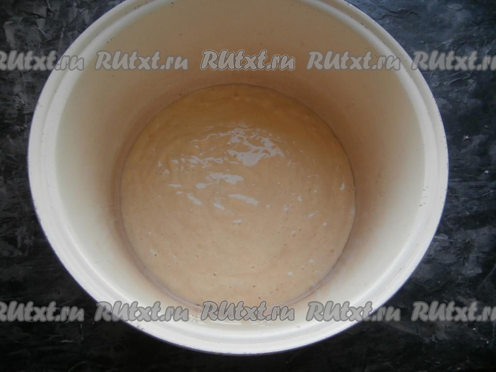 Чашу мультиварки хорошо смазать растительным маслом, на дно поместить пергамент, вылить тесто.