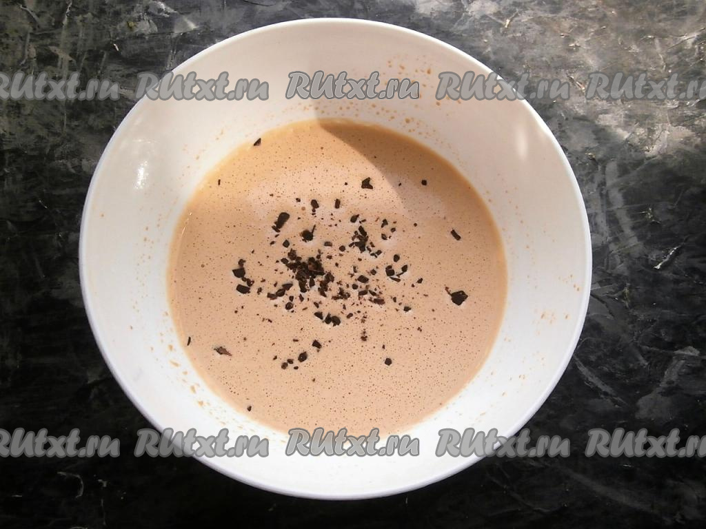Шоколад нарезать ножом (или натереть на тёрке) и добавить в смесь, взбитую блендером.