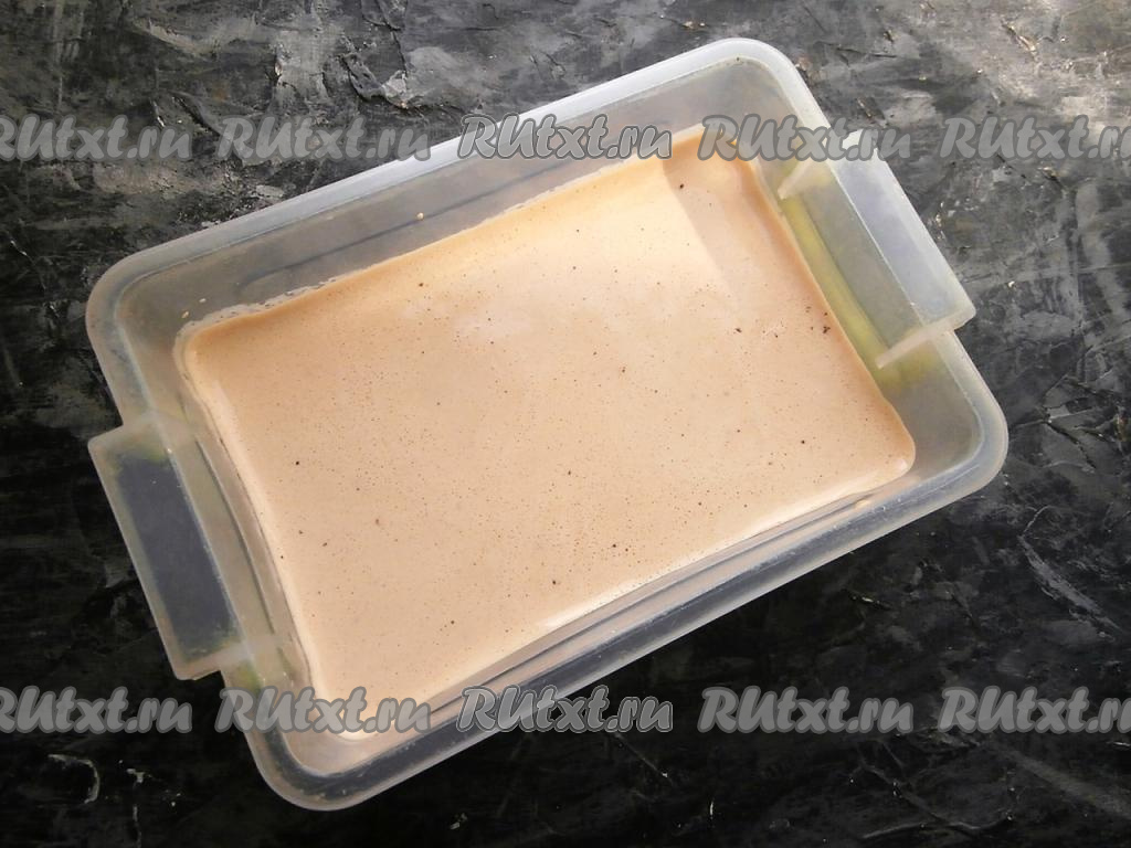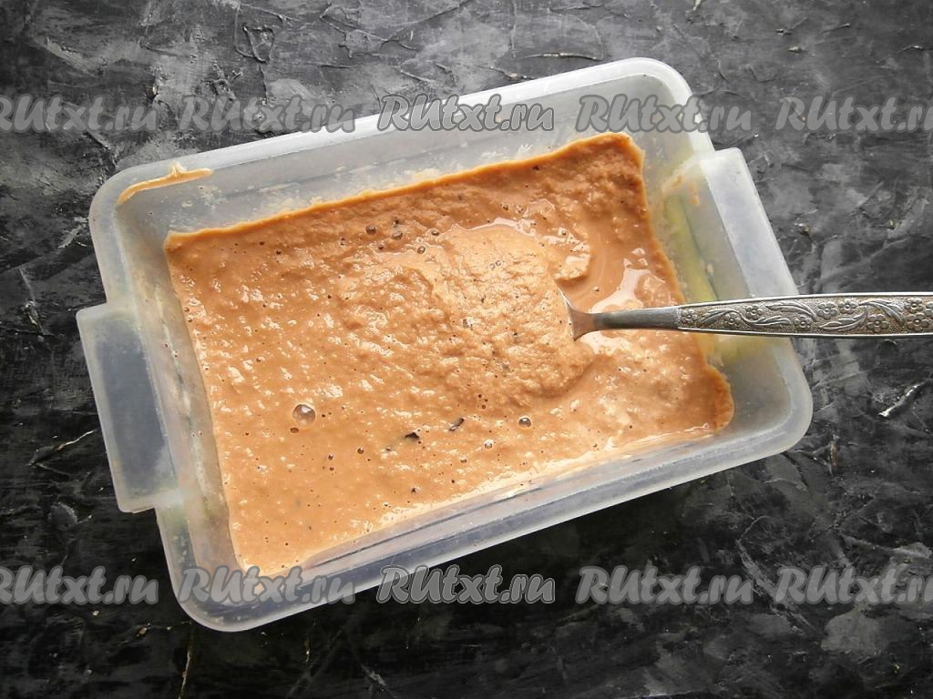 Контейнер накрыть крышкой и поместить в морозилку на 5-6 часов. Каждый час мороженое нужно доставать из морозилки и перемешивать ложкой, чтобы разбить образующиеся кристаллики льда.