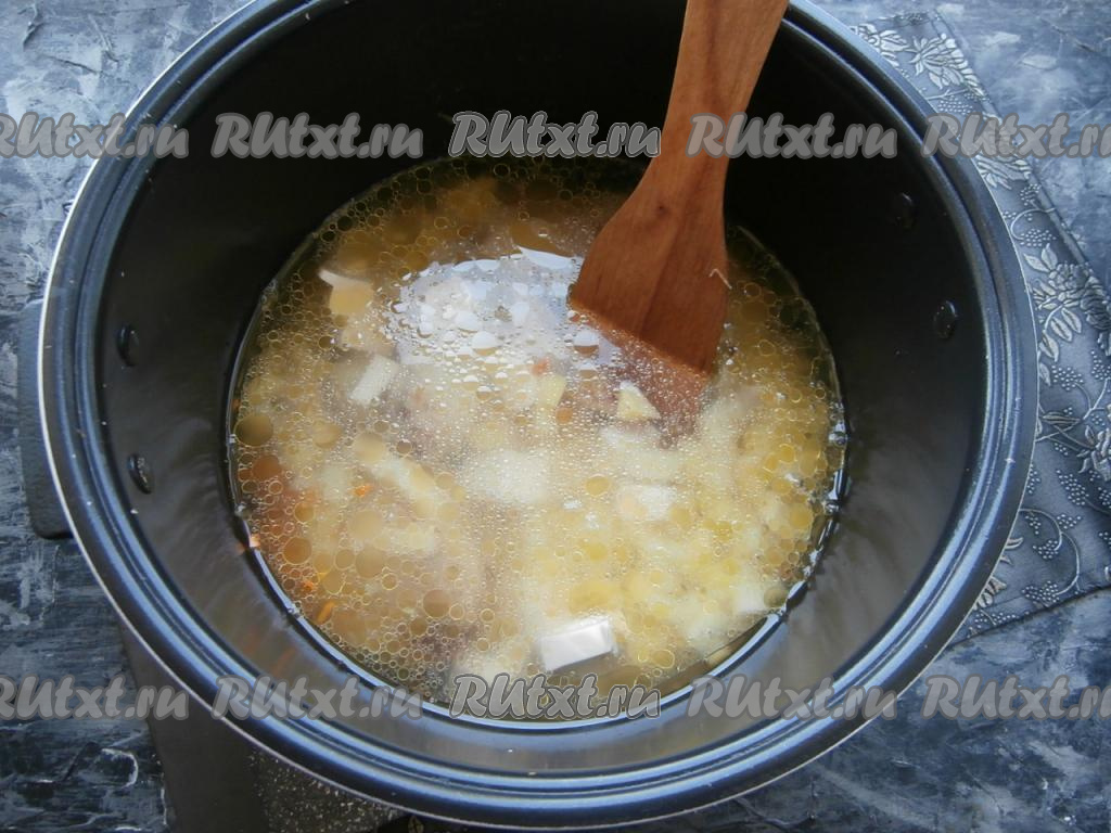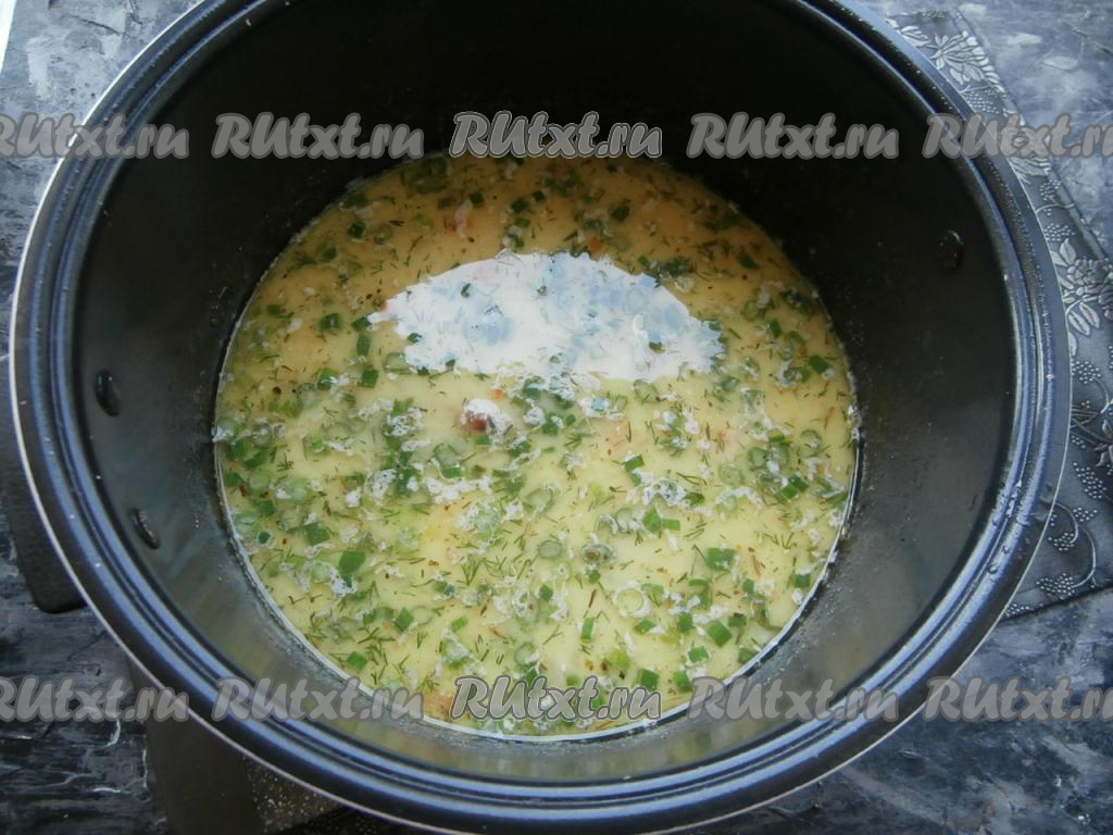 Варить суп под закрытой крышкой мультиварки оставшиеся 15 минут (до сигнала).