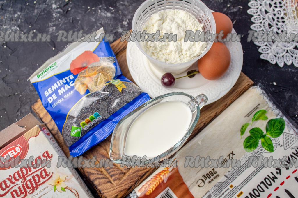 Для приготовления творожно-маковой начинки смешайте творог, 1 куриное яйцо, мак, 2 столовых ложки сахарной пудры (или сахара).