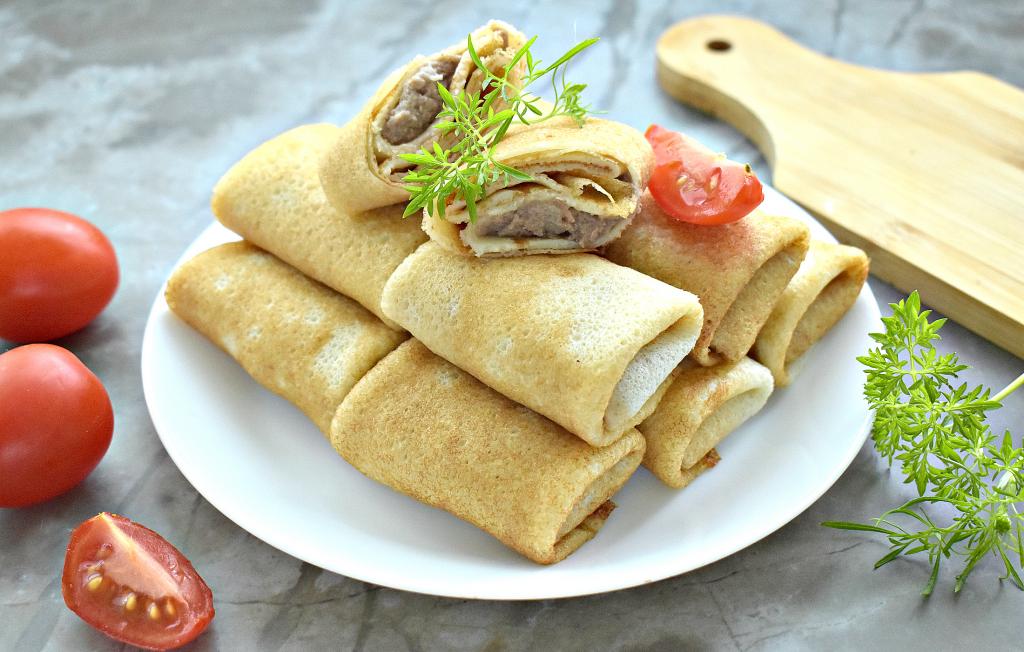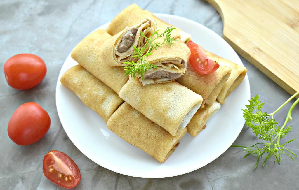 Перед подачей на стол блинчики с ливерной колбасой можно обжарить на сковороде на разогретом масле с двух сторон. Блины получаются и вкусными, и сытным, попробуйте!
