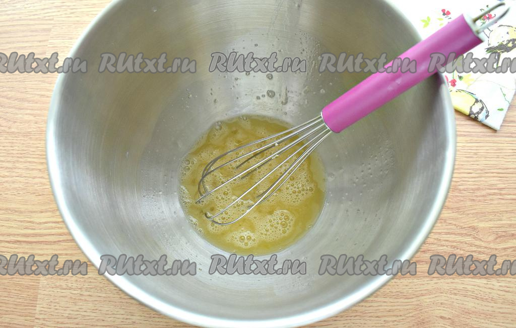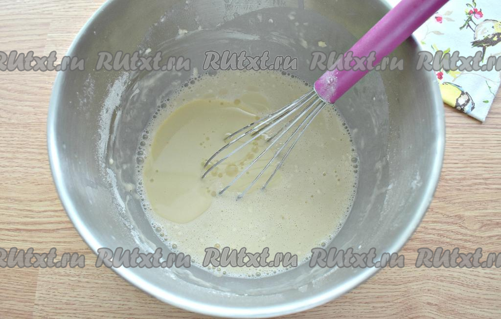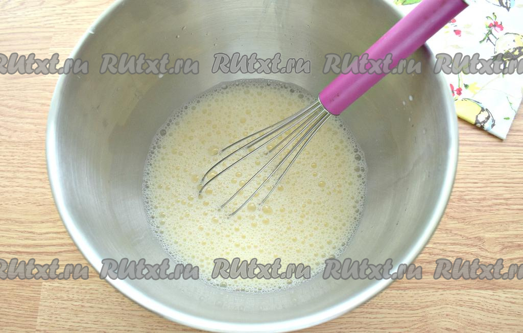 Перемешиваем содержимое миски венчиком. Должна получиться однородная яичная смесь.
