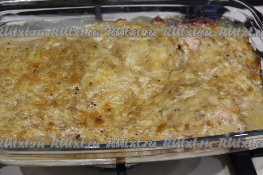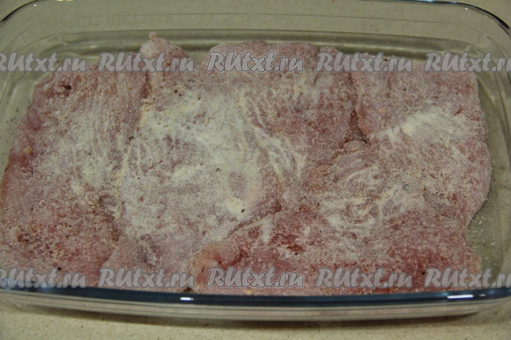 Выложить сырную массу ровным слоем поверх отбивных из индейки.