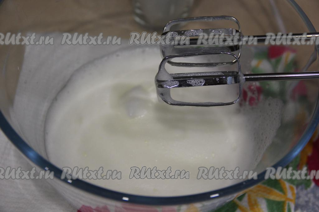 Взбить белки миксером в пышную пену.