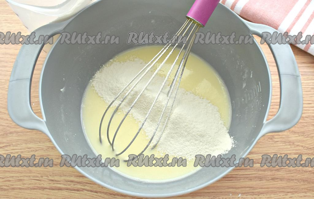 Перемешиваем содержимое миски венчиком в течение 2 минут (до получения однородной смеси).
