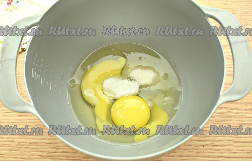 Взбиваем яйца с солью и сахаром венчиком до получения однородной смеси (я взбивала пару минут).
