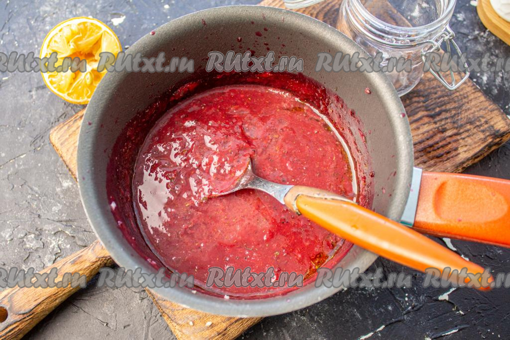 Влейте в соус лимонный сок или уксус, перемешайте, доведите до кипения, проварите соус из крыжовника на небольшом огне пол минуты и снимите с плиты.