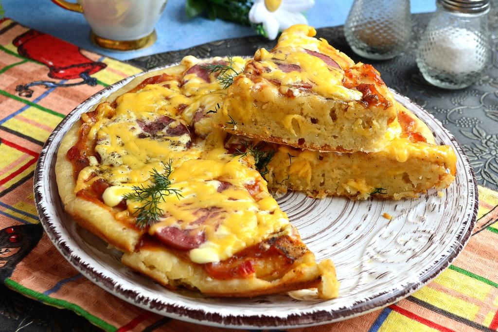Пицца на кефире в мультиварке
