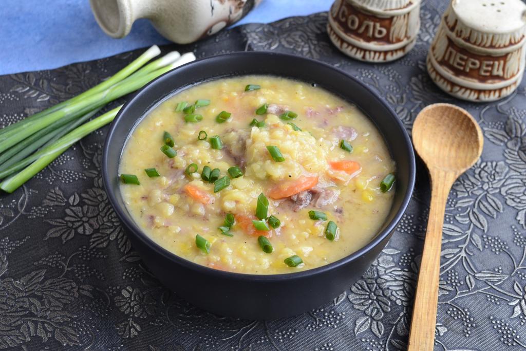 Очень вкусной, сытной гороховой каше с тушёнкой дать немного остыть, чтобы она загустела, а затем можно раскладывать из чаши мультиварки по тарелкам и сразу подавать к столу.