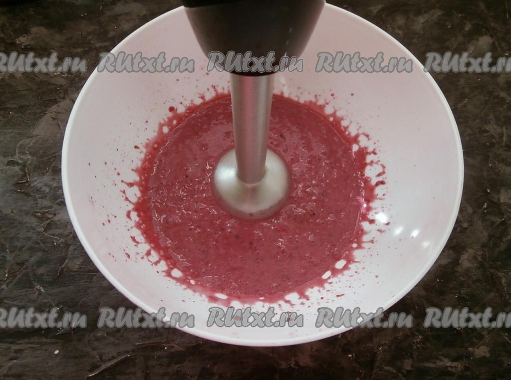 Ягоды со сгущёнкой и сахаром хорошо взбить погружным блендером.