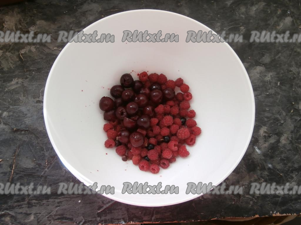 Ягоды можете взять абсолютно любые, промыть их, немного обсушить, если есть крупные косточки - удалить их. Ягодки поместить в объёмную миску.