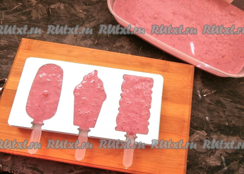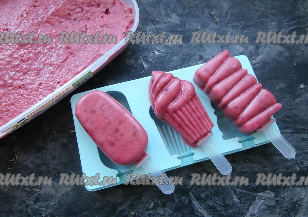 Отправить ягодное мороженое в морозилку на 5-6 часов. Если вы замораживаете в контейнере, тогда через час, а потом ещё через час мороженое нужно перемешать ложкой. Полностью застывшее мороженое достать из морозилки, оставить минут на 5-7 при комнатной температуре и можно наслаждаться.