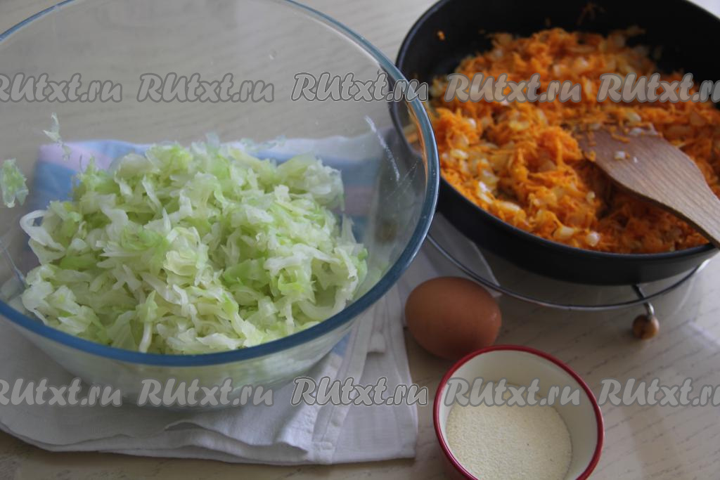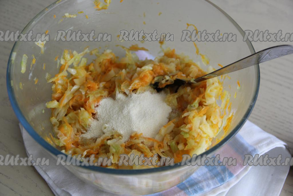 Перемешать капустную массу и оставить на минут 20, чтобы манка набухла.
