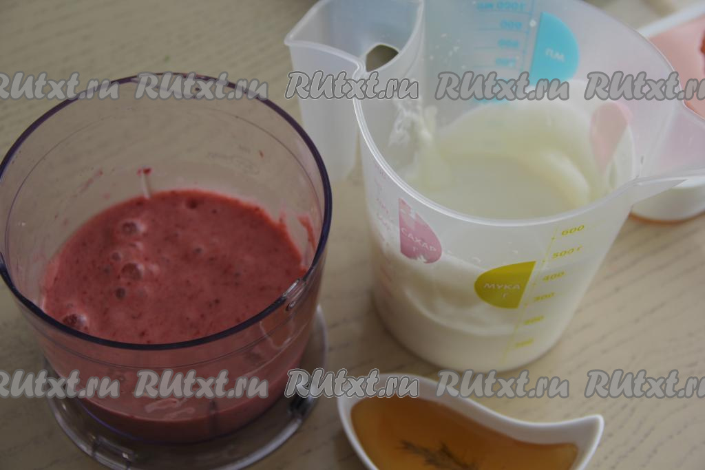 Добавить клубнично-банановое пюре в чашу со взбитыми сливками и мёдом.